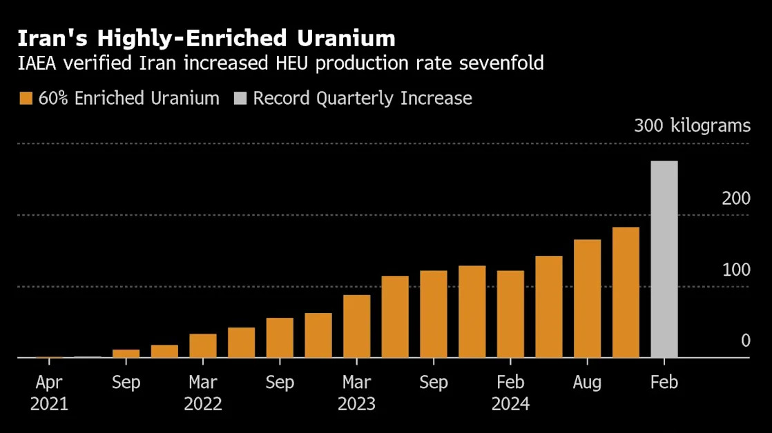 (Bloomberg) -- Iran’s stockpile of uranium enriched near the level needed for nuclear weapons surged more than 50% in the last three months, defying mounting pressure on the Islamic Republic to curb its atomic activities.Most Read from BloombergThe Trump Administration Takes Aim at Transportation ResearchNYC’s Congestion Pricing Pulls In $48.6 Million in First MonthShelters Await Billions in Federal Money for Homelessness ProvidersNew York’s Congestion Pricing Plan Faces Another Legal ShowdownNY